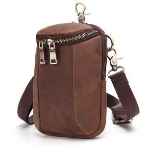 Design: Cool Brown Mens Leather One Shoulder Backpack Chest Bag Sling Bags For Men
