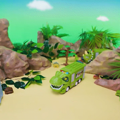 A Good Choice for Little Dinosaur Fans: This dinosaur carrier truck can better stimulate children's curiosity and give them a happy world. Take your dinosaurs on adventures, transporting them from the dinosaur world all the way here to the 21st century.